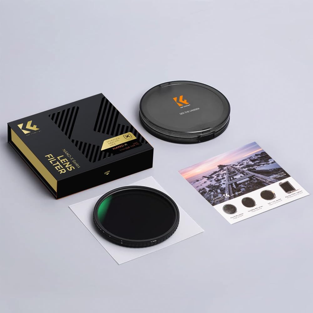 - 【Self-Lock Frame, No 'X’ cross】Say goodbye to the "X" cross on images, K&F Concept utilizes cutting-edge technology to perfectly avoid the common "X" issue of variable nd filter on wide-angle and telephoto lenses.