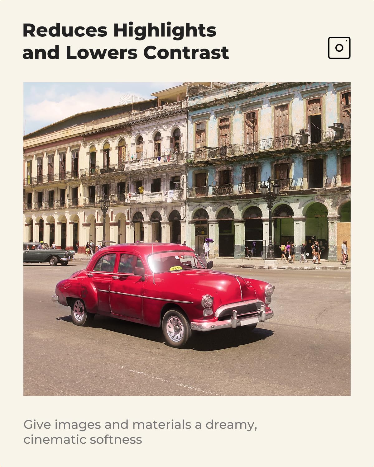 - 【Professional Filter for Portrait Photography】 This black soft 1/4 filter could soften the wrinkles, freckles and pores of facial skin, making it more delicate, plump and gorgeous. The hazy film effect can be better realized, showing dreamily film effect. In order to ensure the ultra-high definition image quality, the double polishing process is adopted to ensure the high definition within 550mm focal length.Reconmending use it in video shooting.