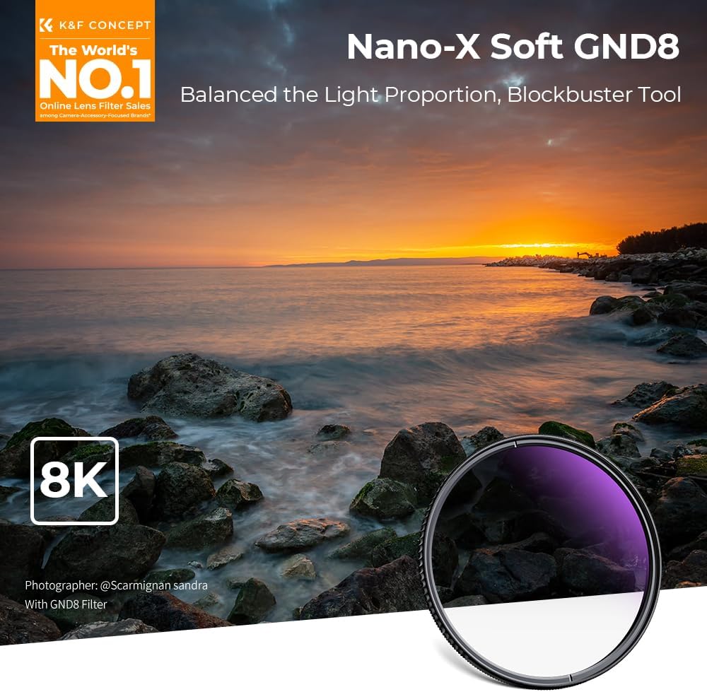 • 【Balancing Light】The soft GND8 filter main function is balancing the light between the ground and sky, avoiding over-exposure.