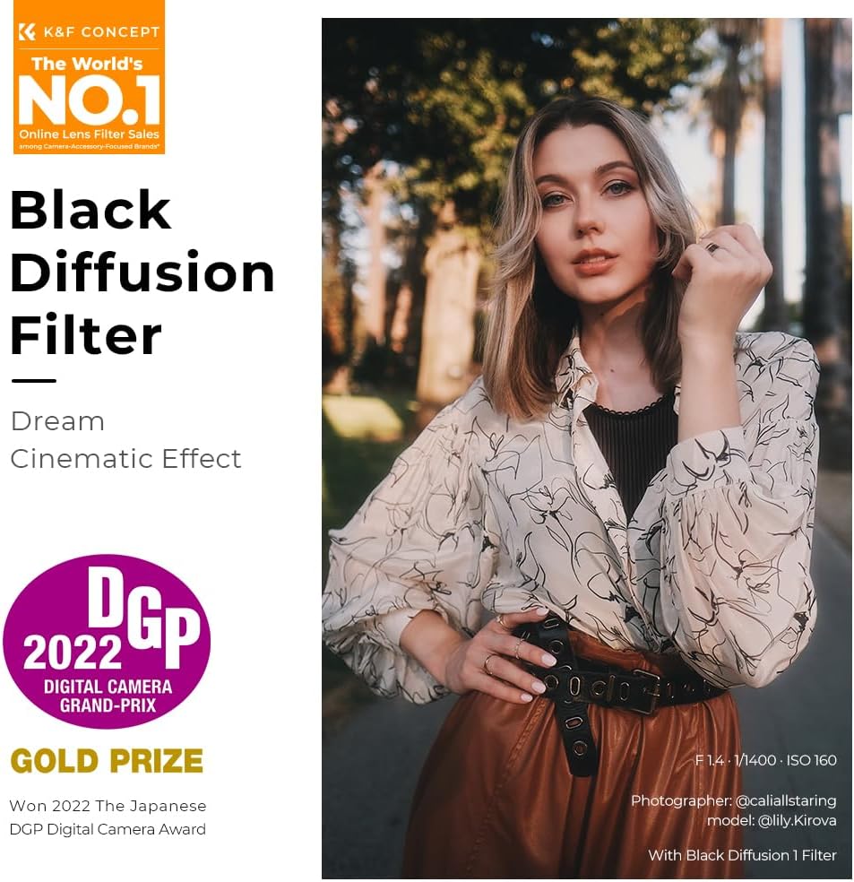 K&F Concept Black Soft Diffusion Filter 1/2 Special Effect Filter Creates Cinematic Dream Hazy Effect with Multi-Layer Coated for Camera Lens