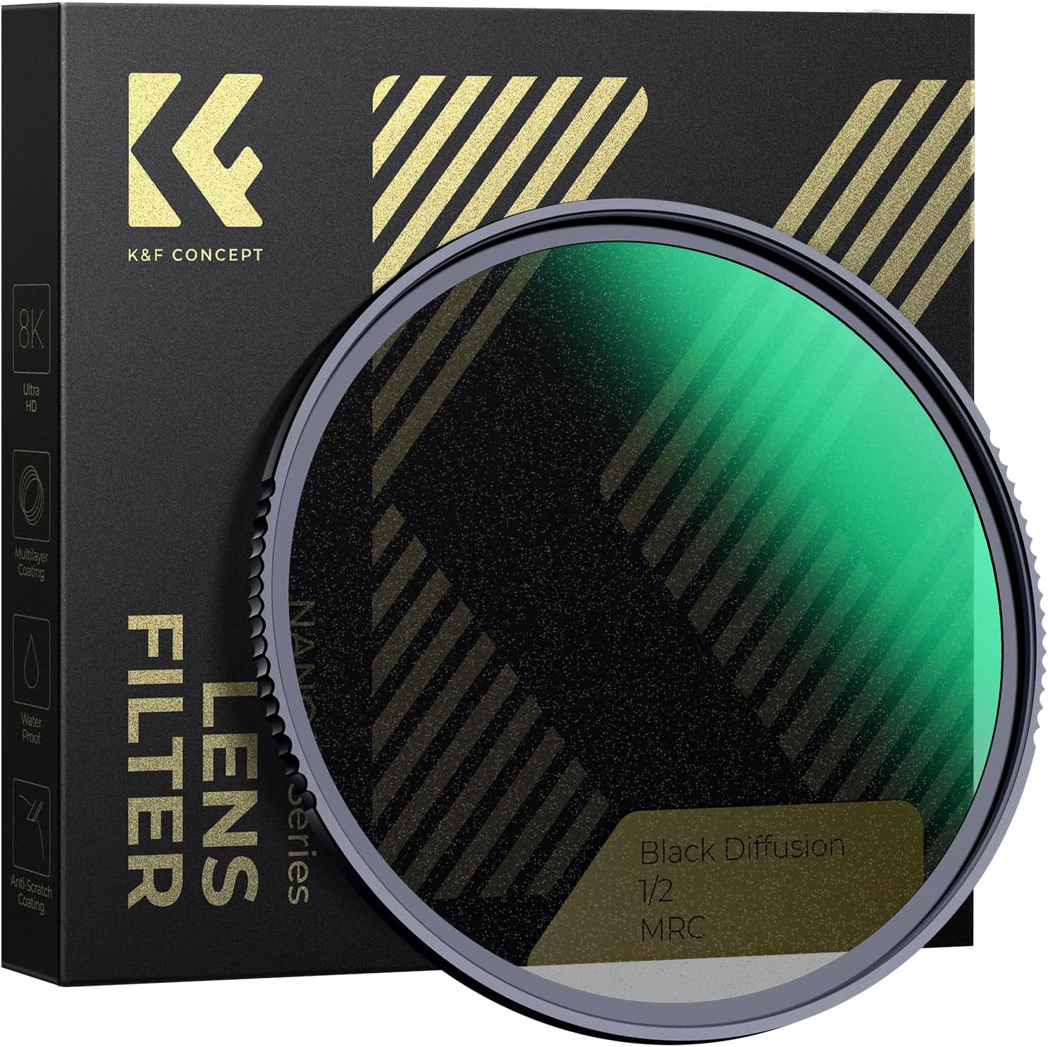 K&F Concept Black Soft Diffusion Filter 1/2 Special Effect Filter Creates Cinematic Dream Hazy Effect with Multi-Layer Coated for Camera Lens