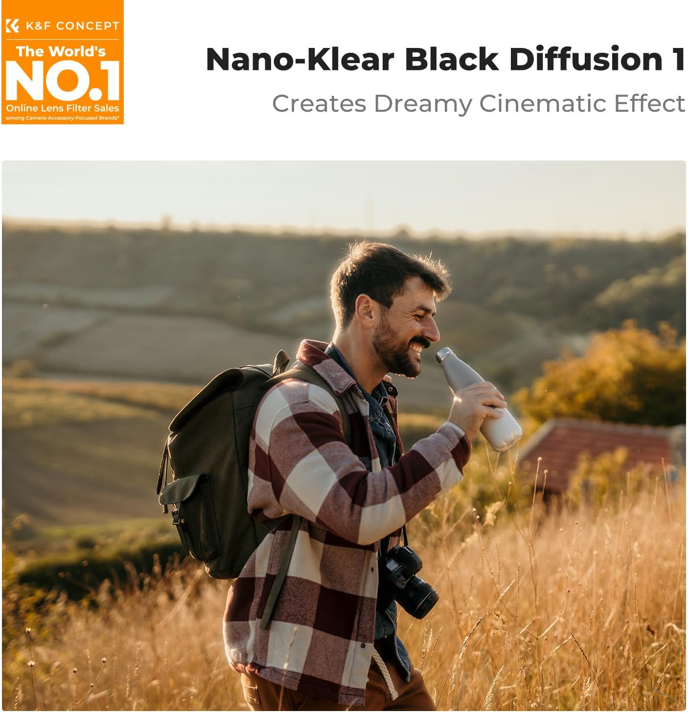 - 【Ehance Cinematic Beauty of Images】Enhance the cinematic beauty of your photography with the K&F Concept 1 black diffusion filter. Crafted to delicately soften skin wrinkles, blemishes, and pores, this kit creates an exquisite and dreamy movie-like effect. The 1 pro mist focus effect is subtle yet practical, making it perfect for environments with moderate light and shadow contrasts.