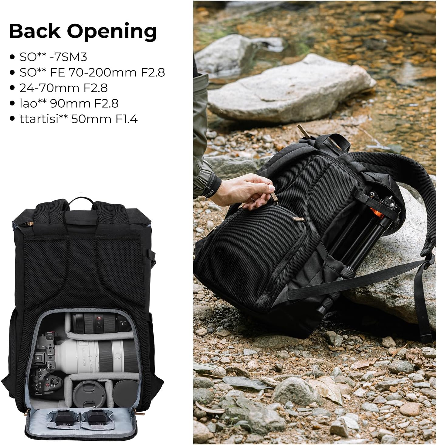- 【Safety & Easy Access】Professional backside access guarantees the safety of your gear, anti-theft; Right quick side access lets you get your gear without putting the bag down.