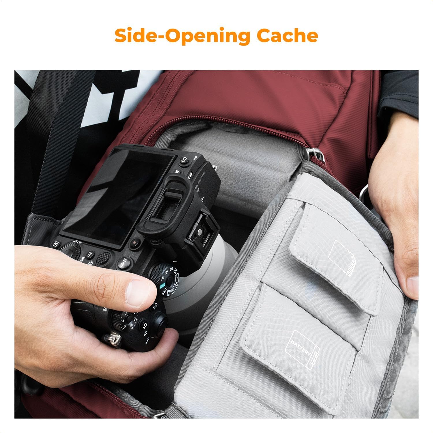 - 【Side Access & Back Fully Unzips】Quick side access lets you get your gear quickly while wearing meaning capturing more beautiful moments; Professional back full open design allows you organize all compartments and equipment effortlessly while offering maximum protection for your valuable items; two extra Auxiliary Straps help to organize all your gear clearly and easily anytime & anywhere.