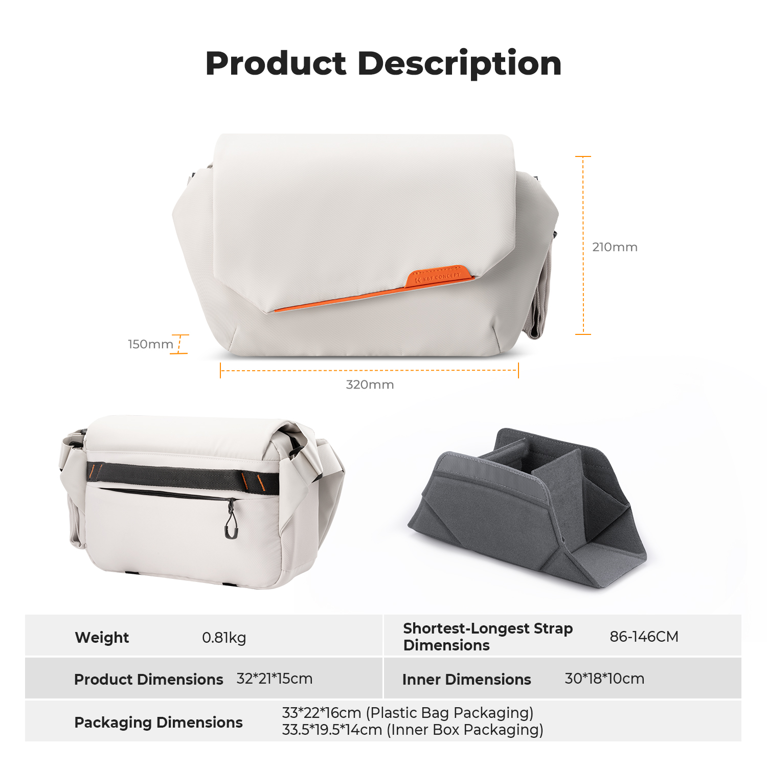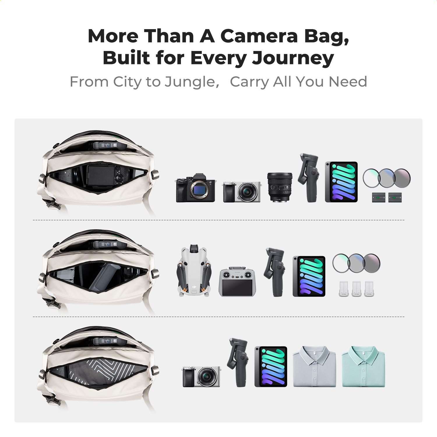 - 4. Comfortable and Ergonomic: Adjustable sling strap for cross-body comfort, ideal for all-day wear during commutes or light treks. Breathable padding reduces strain, making it suitable for photographers on the move.