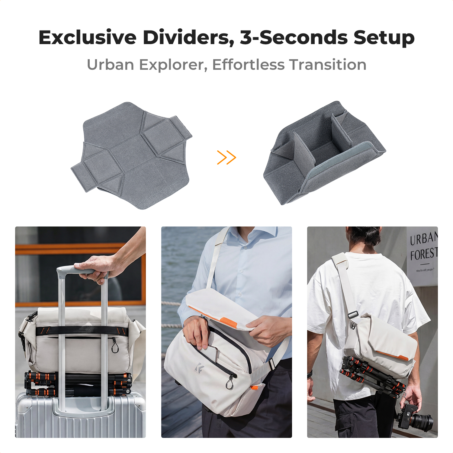 - -Enthusiasts and Vloggers: Balances photography gear with everyday essentials for city shoots, portraits, or content creation.