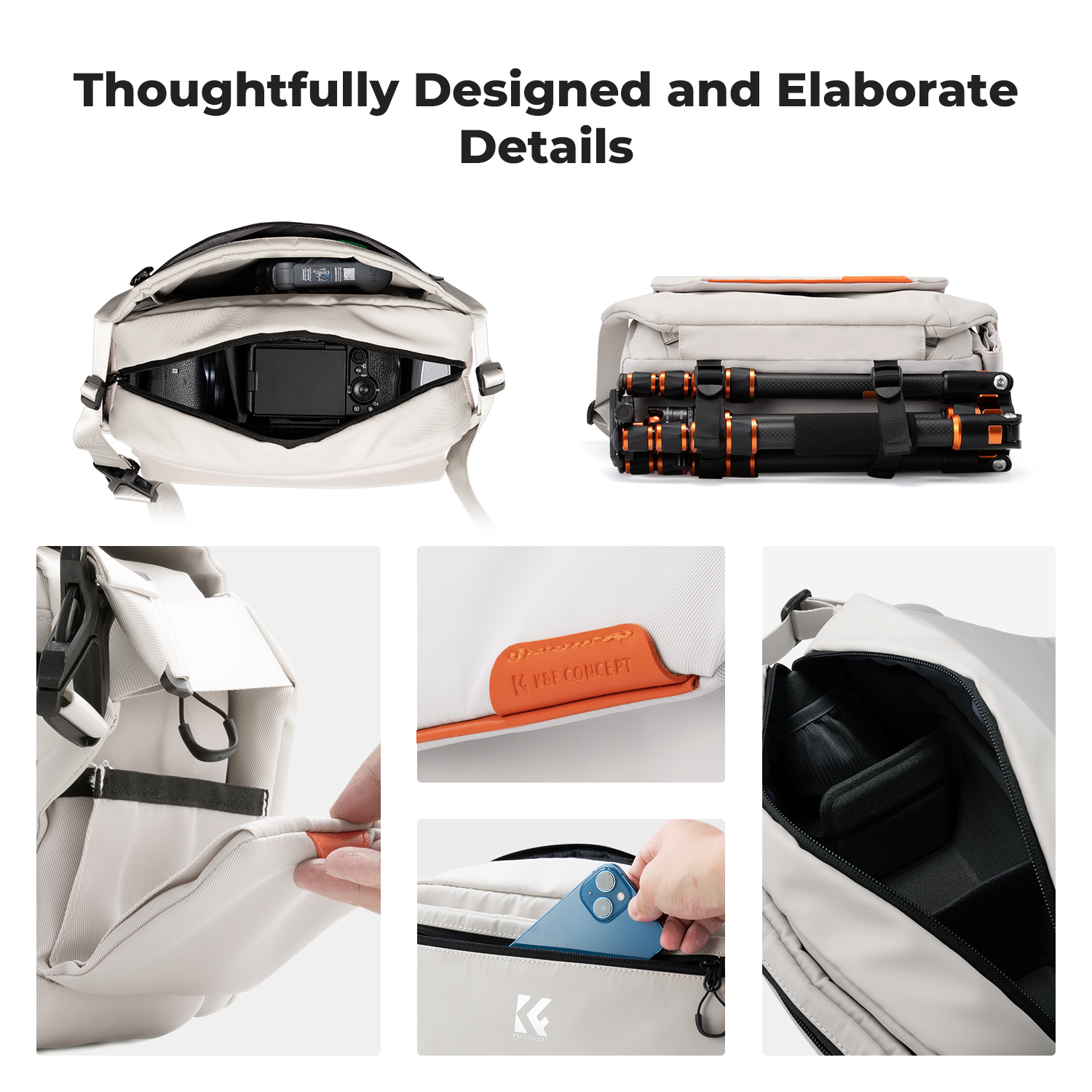 - 3. Durable and Weather-Resistant Construction: Crafted from premium HJ-F271A film fabric (100% polyester) with a water-repellent rating of 3-4, it provides full protection against splashes and light rain. The black minimalist exterior features an embossed K&F logo for a sleek, professional look.
