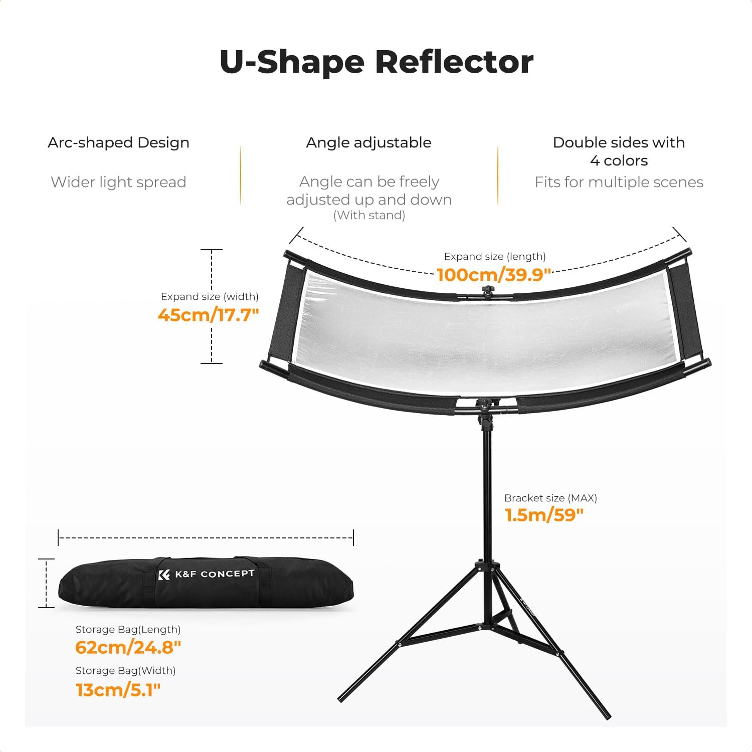 - Full 180° Angle & Height Adjustment- Gain complete creative control with 180° up and down tilt adjustment. The quick-release swivel bracket snaps securely onto the frame, allowing you to fine-tune the reflection angle instantly and lock it in place with screw knobs. The included height-adjustable light stand (1.5m) offers further flexibility and integrates smoothly with other studio equipment.