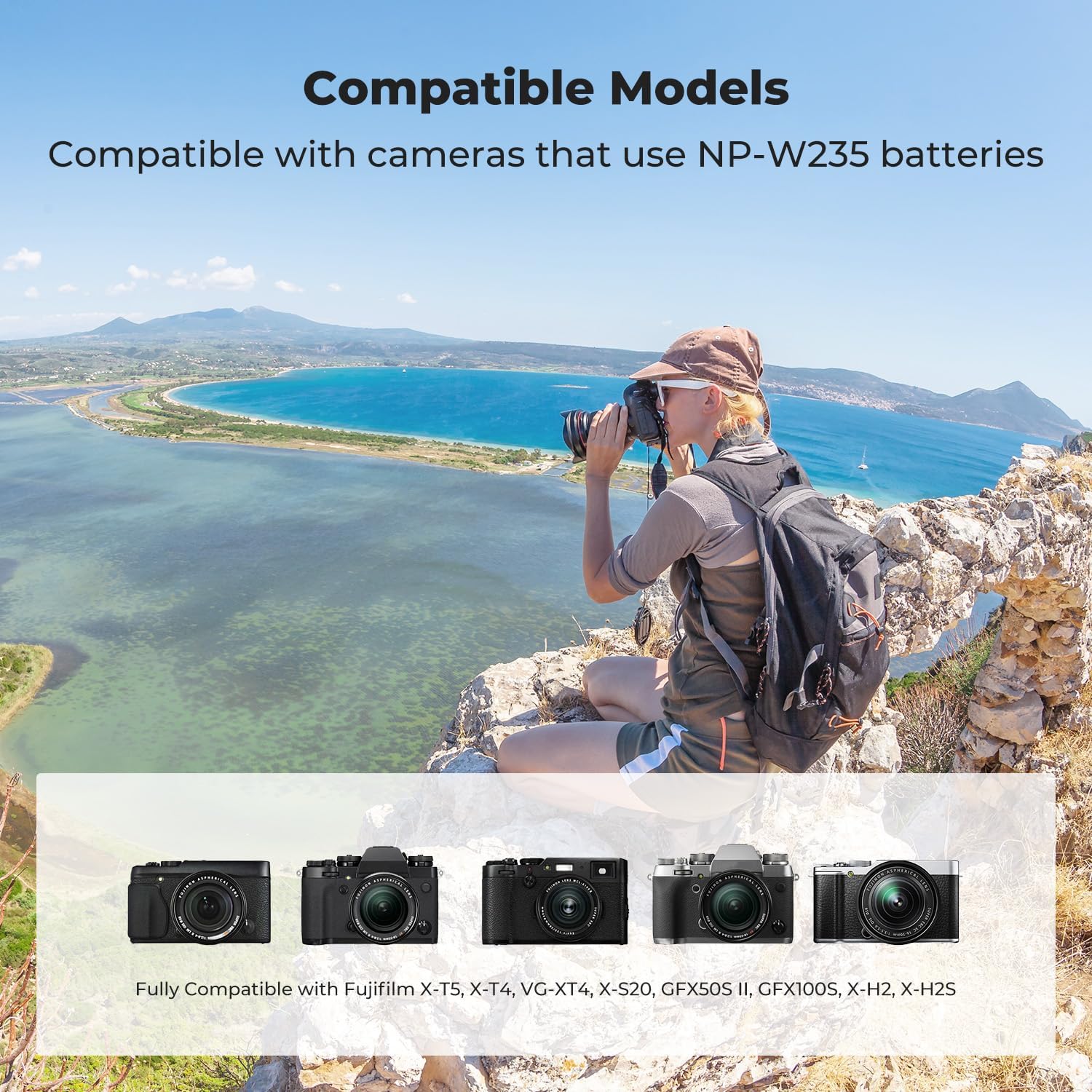 - Multiple Charging in Great Safety. It can be charged via USB wall charger, car charger or power bank, meanwhile, it's compatible for NP-W235 charger. It is safe and reliable with 6 protections, temperature protection, over-voltage protection, over-discharge protection, over-current protection, over-charger protection and short-circuit protection.