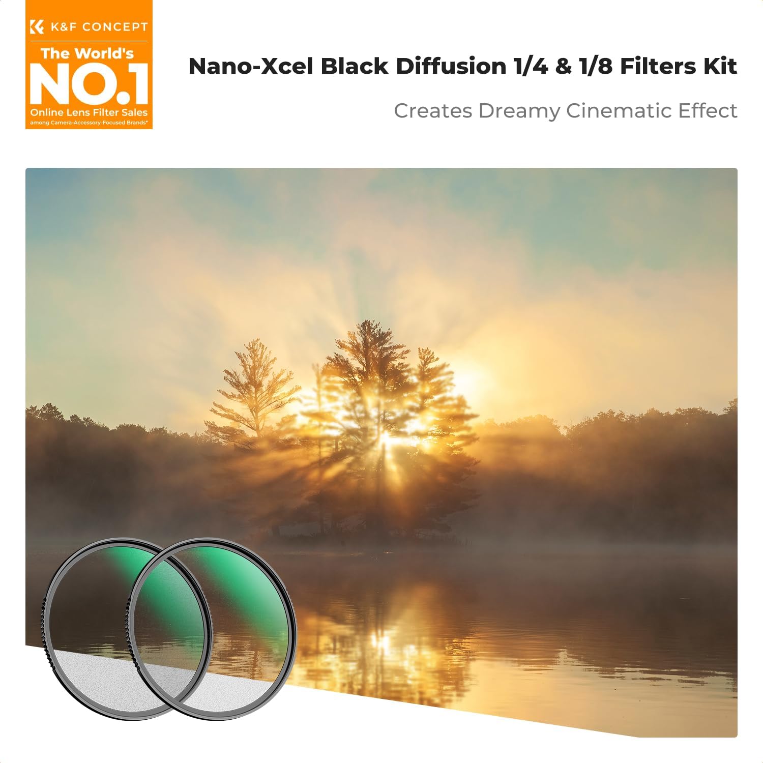 - 【Creats Cinematic Effect】K&F Concept black diffusion filter can soft highlight flares, lowered contrast, and create a cinematic effect for the video and image.