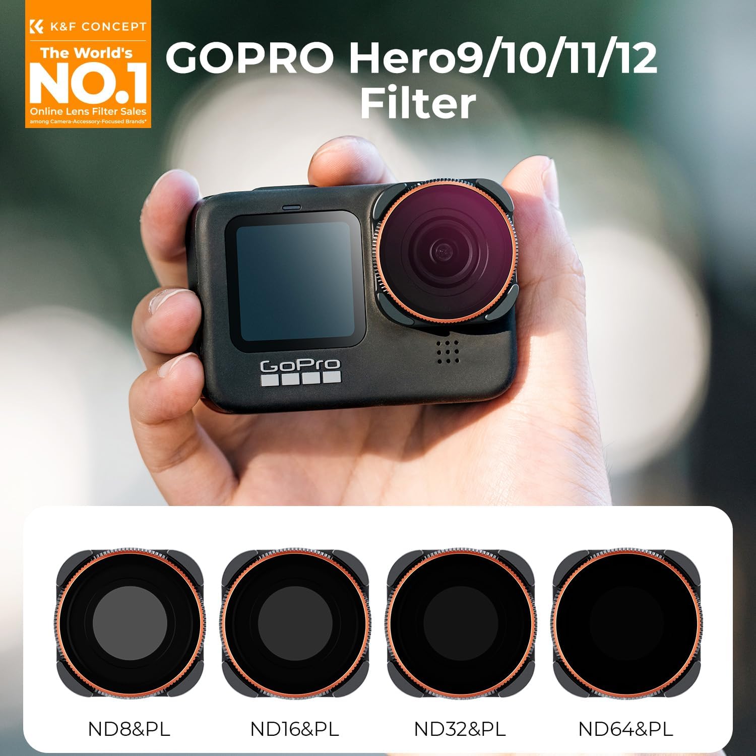 - 【ND/PL Filters Kit 】K&F Concept ND8/PL ND16/PL ND32/PL ND64/PL Lens Filter Kit, precisely engineered for GoPro Hero 13 Hero 12 Hero 11 Hero 10 Hero 9 Black camera.