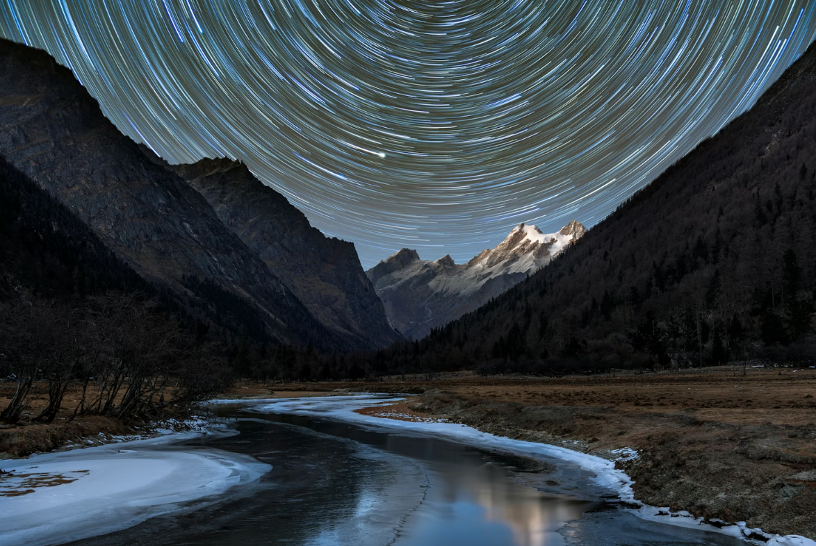The arcs and concentric circles captured represent the Earth's movement. The equipment requirements aren't extreme; a regular camera, a stable tripod, a wide-angle lens, and a remote shutter release are sufficient. Even the aperture doesn't necessarily need to be particularly large, because you're not focusing on a single shot, but rather the accumulation of time. The shooting method typically involves taking a series of short exposures, such as one every tens of seconds, for one or two hours at a time. Some people try to simplify things by using long exposures, but that will almost certainly result in a blurry photo. Post-processing mainly involves stacking hundreds of images in chronological order to make the stars' movement trails appear continuous. The software used isn't complex, but you need to be able to tolerate the hassle of processing large numbers of files. In terms of color, you need to clean up noise and brightness abrupt changes; otherwise, the trails will appear discontinuous, like a lagging computer.